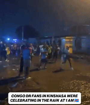 在民主刚果首都金沙萨,球迷雨夜狂欢。当地时间凌晨1点,民主刚果球迷冒着大雨,在街头狂奔、高歌、呐喊,庆祝这一激动人心的时刻。接受采访时,球迷难掩激动之情:“我们付出了一切,52年了!周三我们不用上班,这是我们国家的假日,我们要整晚庆祝,整完开派对!这场胜利,会让我们整个国家都团结起来,让我们国家受益。”